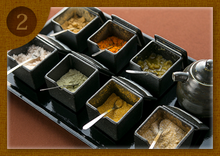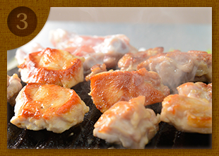 ・真ん中の鉄板で鶏肉を焼いて,お召し上がりください。